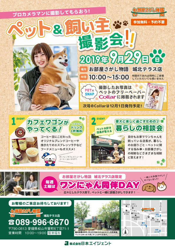 お部屋さがし物語 城北テラス店限定!毎週土曜日は「ワンにゃん同伴DAY」です!!