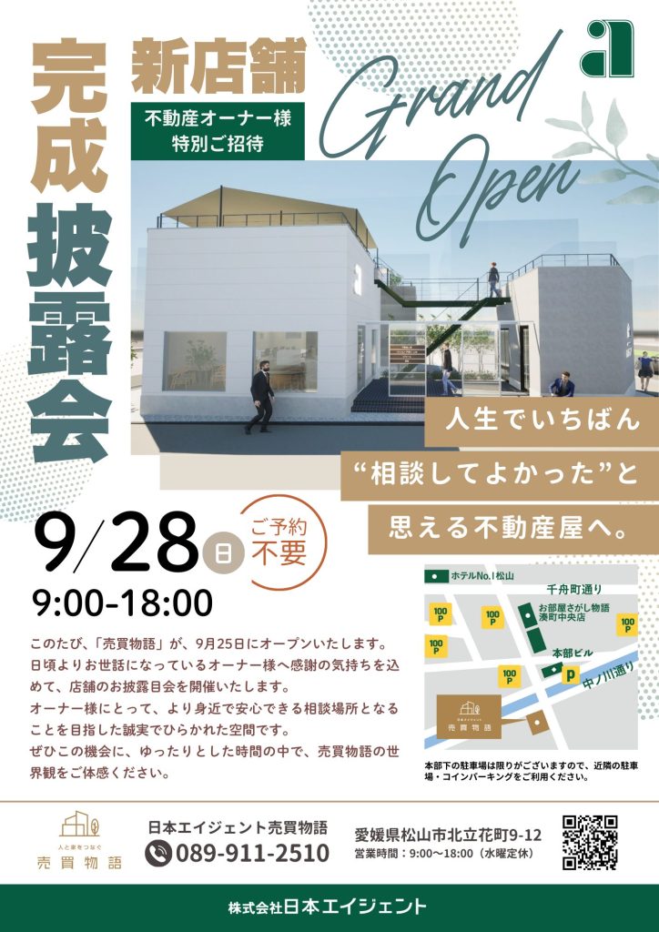 【不動産オーナー様ご招待】「売買物語」新店舗 完成披露会のご案内