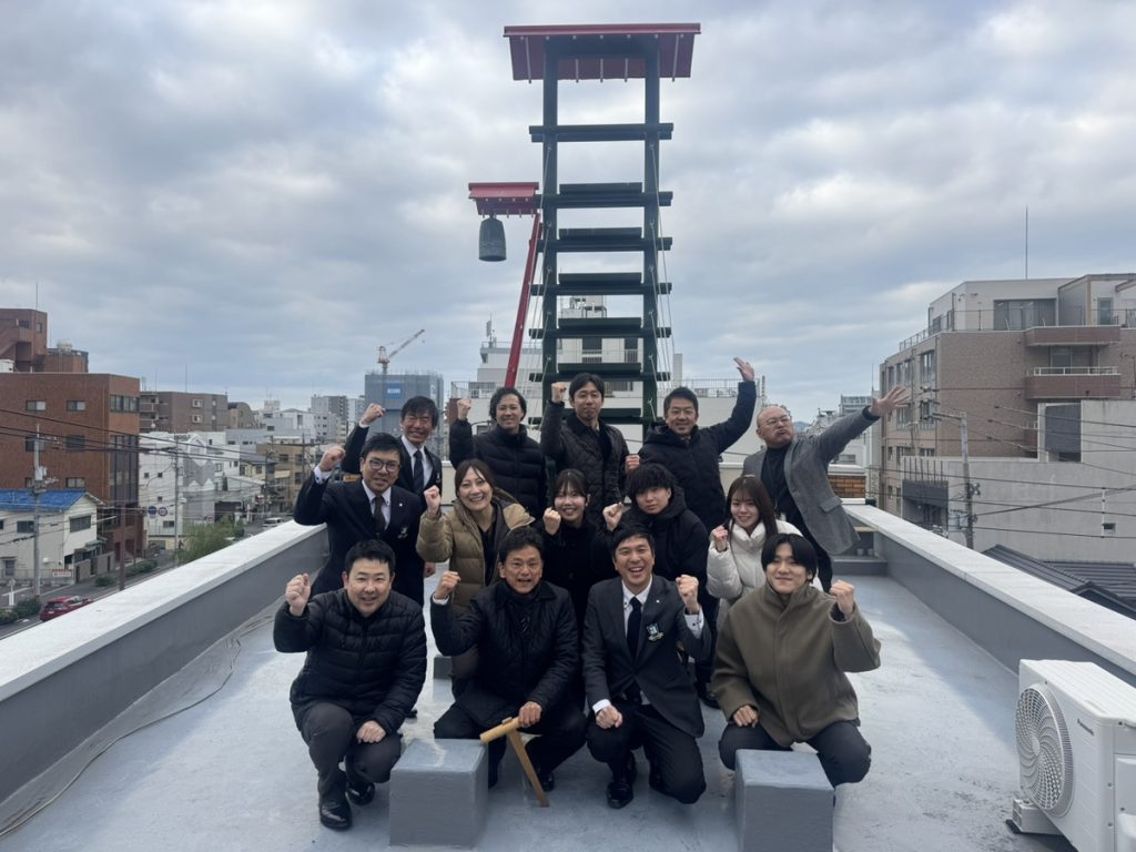 本部屋上にある火の見櫓にて、年男・年女が全スタッフを代表し、