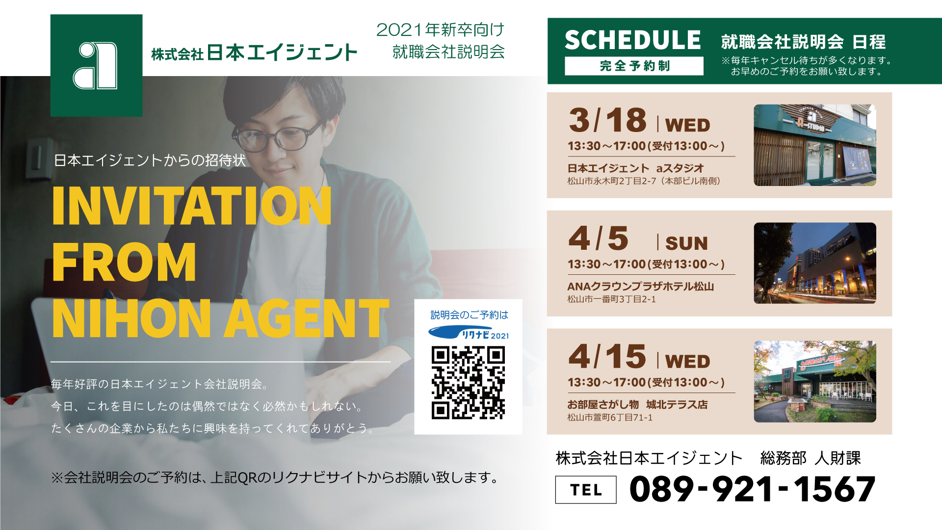 【2021年新卒向け】日本エイジェント単独説明会スケジュール